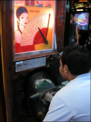 On the boardwalk we played the Bull Game, where you squeeze two metal bull horns together to get a strength rating. I beat Insomnia the first time we played when I got a Macho over his Trucker. But like an idiot I challenged him again, and our ratings reversed. So overall we’re tied. I couldn’t leave my victory well enough alone.